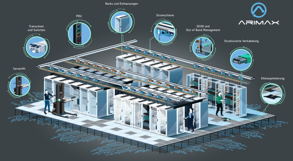 As an innovative and vendor-neutral solution provider, Arimax focuses on highly available data center infrastructures and advanced solutions that go beyond standard offerings. Its portfolio includes power supply, cooling systems, racks and enclosures, connectivity solutions, as well as out-of-band management and software solutions for monitoring and optimizing data center operations.